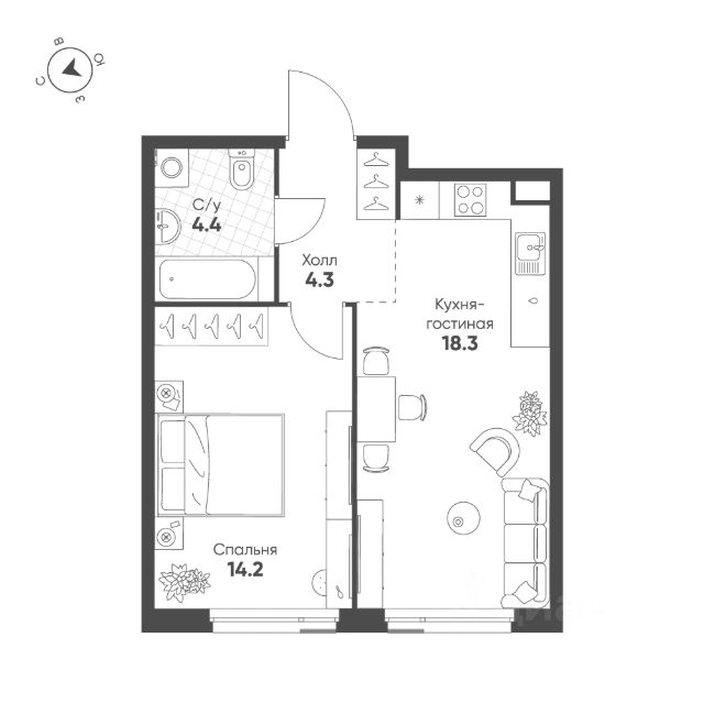Кухня: 10,2 м². Просторная кухня с возможностью организации обеденной зоны.