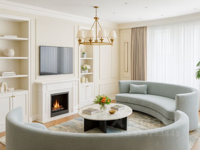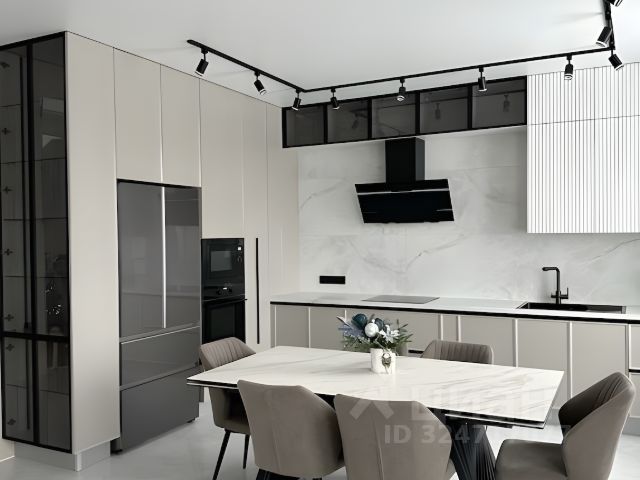 Кухня-гостиная 30м2 с 54 сценариями освещения, полностью укомплектована всей техникой(посудомоечная машина, микроволновая печь, духовой шкаф, встроенный холодильник, вытяжка, варочная панель).