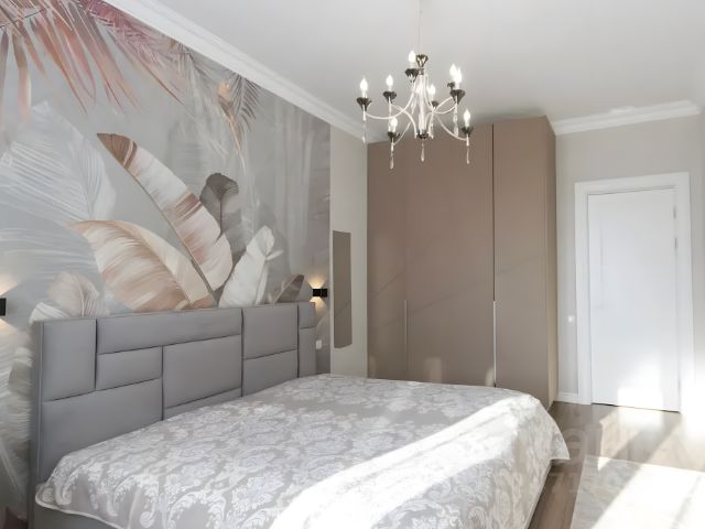 Спальня с 16 сценариями освещения, находится в мастер-блоке общей площадью 20 м2, и имеет отдельный, собственный санузел с душевой и ванной и гардеробную комнату с сейфом, двуспальная кровать 160/200 см с подъёмным механизмом, с ортопедическим матрасом премиум-класса переменной жесткости, состоящим из блока 2000 независимых пружин. ТВ 55 дюймов, кондиционер, электрокарниз, управляется Алисой.