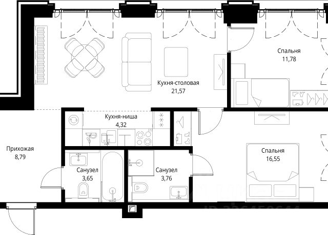 Прямая продажа от застройщика. Продаётся 3-комнатная квартира общей площадью 82.57 м² с предчистовой отделкой в ЖК City Вау, квартале Cliff, на 13-м этаже 15 этажного дома. Cliff by City Вау - это пять клубных домов на первой линии озелененной набережной Реки Москвы. Со стороны южного фасада, обращенного к воде, находится прогулочная зона, организующая входы в жилые секции. Вдоль северного фасада пятой очереди проходит общеквартальный озелененный бульвар с тематическими зонами и дворовыми территориями. В каждой секции предусмотрены сквозные входные группы, а между секциями - проходы для пешеходов, связывающие набережную и бульвар с местами для отдыха внутри квартала. Данное решение позволяет сделать комплекс с доступной и безбарьерной городской средой. Со стороны бульвара у каждой башни для жильцов комплекса расположены приватные потайные дворики, огороженные живой изгородью и интегрированные в общий ландшафт бульвара. Из-за перепадов высот по рельефу, уровень бульвара возвышается относительно уровня дворов, что делает их еще более камерными. Доступ на территорию со стороны бульвара осуществляется через калитку. В каждом здании комбинируется максимальное количество и разнообразие форматов квартир: от видовых квартир с зелеными террасами и лоджиями до квартир малого формата. Входные группы 1-ых этажей поистине уникальные пространства. Лобби имеют высоту потолков 5 - 6 м и панорамные окна. В отделке используются дорогие натуральные материалы:шпон дерева, мрамор, металл и др. Одноуровневый паркинг с дополнительными функциями: - Велопарковка, - Места для подкачки шин, - Зоны погрузки и разгрузки, - Зарядки для электрокаров, - Кладовыми помещениями. Концепция жилого комплекса City Вау - настоящий город в городе с отлично развитой инфраструктурой и собственной благоустроенной набережной. На территории жилого комплекса расположено пять кварталов - Atlantic, Pacific, Indian, North, Cliff. Жилой квартал City Вау отличается оригинальной концепцией и выделяется среди других проектов такими характеристиками как: - Архитектура, - Виды из окон, - Природное окружение, вызывая гордость у жителей и восхищение у прохожих. Вся жизнь района Покровское-Стрешнево строится вокруг водных объектов: - Пойма реки Сходни с уникальной экосистемой, - Речка Химка и Химкинское водохранилище, - Москва-река, - Канал имени Москвы. Кругом вода, и местные с удовольствием этим пользуются. А сразу за рекой - центр водного спорта в Строгино с вейк-парком и яхт-клубами. Помимо воды, здесь очень много зелени: - Рядом Сходненский ковш памятник природы, естественный амфитеатр глубиной 40 метров; - Парк при усадьбе Братцево с фруктовым садом; - Дубовая роща "Маяк", - Алешкинский лес; - Лесопарк Покровское-Стрешнево с пляжами и бобрами. Главные транспортные артерии района: - Волоколамское шоссе, - Таганско-Краснопресненская линия метро и МЦД-2. Всего за 20 минут можно добраться до центра на машине или метро, а МЦД связывает ЖК City Вау с