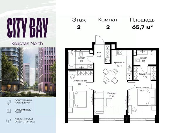 Прямая продажа от застройщика. Продаётся 2-комнатная квартира общей площадью 65.70 м² с предчистовой отделкой в ЖК City Вау, квартале North, на 2-м этаже 10 этажного дома. Концепция жилого комплекса City Вау - настоящий город в городе с отлично развитой инфраструктурой и собственной благоустроенной набережной. На территории жилого комплекса расположено пять кварталов - Atlantic, Pacific, Indian, North, Cliff. Жилой квартал City Вау отличается оригинальной концепцией и выделяется среди других проектов такими характеристиками как: - Архитектура, - Виды из окон, - Природное окружение, вызывая гордость у жителей и восхищение у прохожих. Вся жизнь района Покровское-Стрешнево строится вокруг водных объектов: - Пойма реки Сходни с уникальной экосистемой, - Речка Химка и Химкинское водохранилище, - Москва-река, - Канал имени Москвы. Кругом вода, и местные с удовольствием этим пользуются. А сразу за рекой - центр водного спорта в Строгино с вейк-парком и яхт-клубами. Помимо воды, здесь очень много зелени: - Рядом Сходненский ковш памятник природы, естественный амфитеатр глубиной 40 метров; - Парк при усадьбе Братцево с фруктовым садом; - Дубовая роща "Маяк", - Алешкинский лес; - Лесопарк Покровское-Стрешнево с пляжами и бобрами. Главные транспортные артерии района: - Волоколамское шоссе, - Таганско-Краснопресненская линия метро и МЦД-2. Всего за 20 минут можно добраться до центра на машине или метро, а МЦД связывает ЖК City Вау с северными, восточными и юго-восточными районами. Компания MR Group предлагает своим клиентам специальные условия приобретения квартир в рамках программ ипотечного кредитования от банков-партнеров.