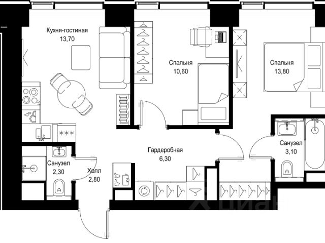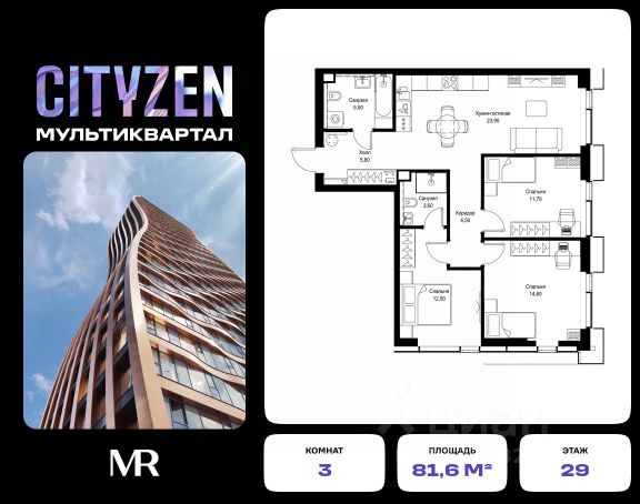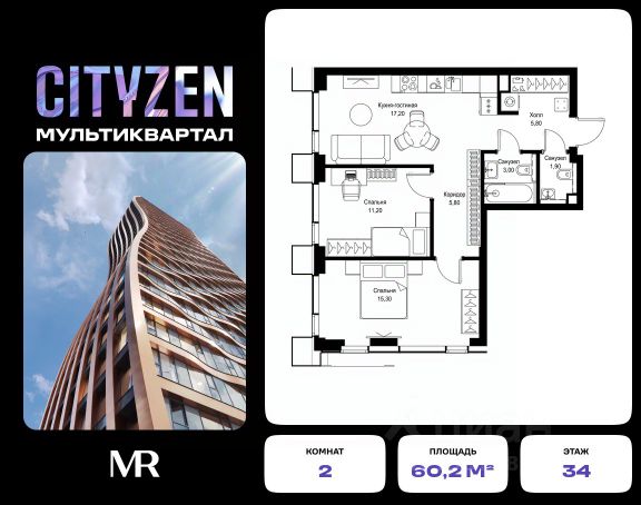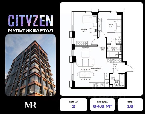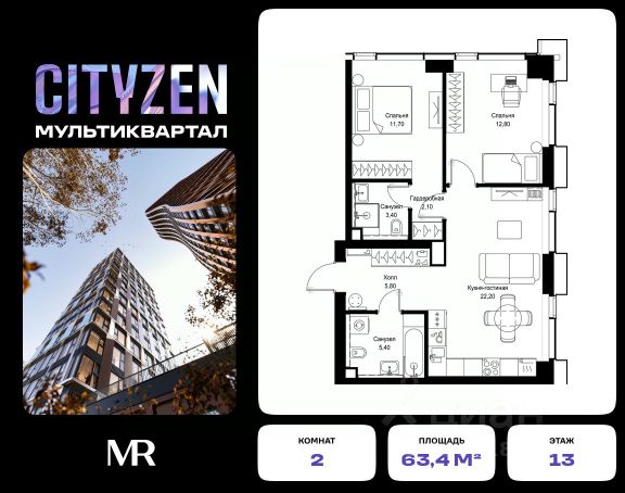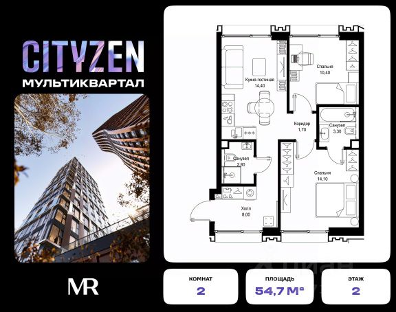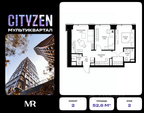 Продается 2-комнатная квартира от застройщика в жилом мультиквартале CITYZEN на 2-м этаже в корпусе #8 урбан-блока VOLNA. Общая площадь лота составляет 54.70 м² В лобби корпуса #8 урбан-блока VOLNA представлены: 1. Small-лобби с зоной отдыха 2. Почта 3. Колясочная 4. Лапомойка 5. Лифтовой холл 6. Санузел 7. Помещение уборочного инвентаря CITYZEN — это большой город в миниатюре. Инфраструктура мультиквартала организована по принципу шаговой доступности от подъезда до любой нужной точки: супермаркета, кофейни, салона красоты, фитнес-центра и др. В домах представлены лобби с атмосферой премиального резорта, дизайн которых вдохновлен французскими интерьерами 1960-х годов. Концепция благоустройства территории мультиквартала предусматривает большое количество вечнозеленых растений, что создает ощущение максимальной близости к природе. Жителей квартала ждут места для отдыха, игр, занятий спортом и прогулок с домашними питомцами. В приватном дворе с собственным садом предусмотрена зеленая комьюнити-гостиная для дружеского отдыха и общения, одна из стен которой подходит для кинопроекций, а также зеленый рабочий кабинет в саду (бизнес-гардена), оборудованный wi-fi станцией и usb-разъёмами для зарядки устройств. Маленьких жителей ждут авторские игровые площадки для разных возрастных групп (от 0 до 12 лет). Начало строительства - 1 квартал 2024 года. Окончание строительства - 3 квартал 2027 года.Компания MR предлагает своим клиентам специальные условия приобретения квартир в рамках программ ипотечного кредитования от банков-партнеров.