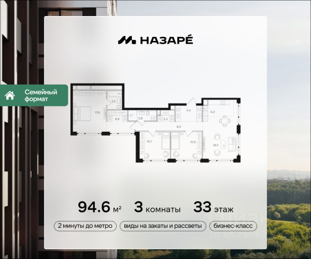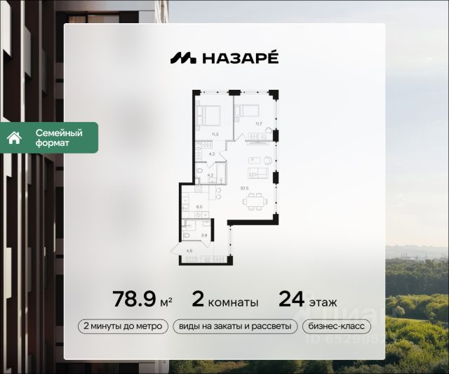 Продается 2-комнатная квартира в ЖК "НАЗАРЕ'" Общая площадь - 57.80 Тип дома - монолитный Этаж - 8 Год сдачи - 2028 Предлагается квартира площадью 57.80 кв. м в новом современном квартале на востоке Москвы, прямо у станций метро и МЦК "Бульвар Рокоссовского". Квартира располагается в корпусе 5 на 8 этаже комплекса бизнес-класса "НАЗАРЕ'". Стоимость указана с учетом скидки 20%, ваша выгода составит 5 621 628 рублей! Полная стоимость квартиры без скидки 28 108 140 рублей. Великолепная транспортная доступность: • 2 минуты ходьбы до метро и МЦК "Бульвар Рокоссовского"; • 3 минуты на авто - удобный выезд на СВХ (МСД); • 10 минут на авто до национального парка "Лосиный остров"; • 10 минут на авто до "Измайловского парка"; • 15 минут до авто до парка "Сокольники"; • 15 минут занимает выезд на ТТК, • 18 минут на авто до Садового кольца. Индивидуальная архитектура в современном стиле: • шесть башен переменной высотности от 24 до 43 этажей, в том числе одна высотная 143-метровая доминанта, которая станет достопримечательностью востока Москвы; • авторы архитектурной концепции - знаменитое бюро СПИЧ (среди их работ - башня "Федерация", новое здание Третьяковской галереи, реконструкция БСА "Лужники" и др.); • торгово-развлекательный комплекс с фитнес-центром, детской игровой комнатой и открытыми террасами прямо возле квартала; • дизайнерские лобби от бюро ABOVE ARCHITECTURE с панорамными окнами, интерьерами в теплой цветовой гамме и мягкой зоной ожидания располагаются в каждой башне; • корпуса расположены так, чтобы из окон открывались потрясающие виды на закаты и рассветы, зеленые панорамы или огни мегаполиса; Особенности расположения "НАЗАРЕ'" находится максимально близко к метро, и в то же время проект вписан в уже существующую инфраструктуру зеленого столичного района Богородское. Это обеспечивает быстрый доступ ко всем нужным объектам инфраструктуры (детские сады, школы, медцентры, магазины, салоны красоты, фитнес-клубы, футбольные поля, спортивные школы), а также к живописным зеленым зонам - национальному парку "Лосиный остров", парку "Сокольники", Черкизовскому детскому парку, Измайловскому лесопарку с усадьбой Измайлово. Собственная инфраструктура и благоустройство Шесть башен квартала будут объединены цокольным этажом, в который можно попасть как с улицы, так и со стороны лобби. Здесь разместятся необходимые для комфортной повседневной жизни кофейни, супермаркет, рестораны, магазины и многое другое. В комплексе предусмотрен вместительный двухуровневый подземный паркинг с келлерами для хранения сезонных вещей. Во дворе комплекса "НАЗАРЕ'" будут места как для спокойного отдыха и работы, так и для игр и спорта. Здесь организованы игровые площадки для детей всех возврастов, места для стритбола и тенниса, а также зона с природным ландшафтом и коворкинг с экологичной деревянной мебелью. Квартира станция Локомотив (МЦК).