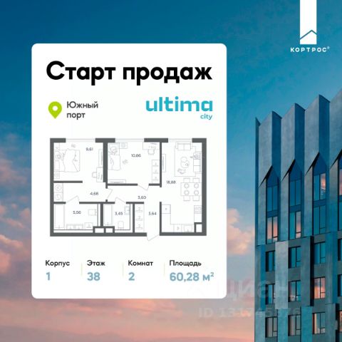 Указанная акционная стоимость доступна при 100% оплате или ипотеке без субсидирования. Цена действует до 31.12.2025 23:49:59. Стоимость без акции 27265960. Старт продаж! Продаётся 2-комнатная квартира от застройщика ГК "КОРТРОС" в жилом комплексе бизнес-класса ULTIMAcity. Квартира расположена на 5 этаже 52 этажного корпуса 2. Общая площадь 67,49 м². Без отделки. В квартире: • Мастер-спальня • Гардеробная • Два сан. узла ULTIMAcity — жилой комплекс бизнес-класса в перспективном районе на юго-востоке Москвы. На его территории появятся 9 башен на 756 этажей, двухуровневый подземный паркинг, собственная инфраструктура, включая детский сад и школу. Всего девелопер благоустроит территорию в 2,6 га. Ближайшая станция метро — "Южный порт". Она откроется в 2028 году и будет находиться в 2-х минутах ходьбы. А прямо напротив расположится остановка водного автобуса-электрохода "Синичка". Дорога от квартала будет удобна и для автомобилистов: - до Кремля — 12 км - до МКАД — 12 км - до выезда на ТТК — 3 км - до Садового кольца — 8 км В двух корпусах первой очереди ULTIMAcity этажностью 45 и 52 реализуется 1 079 квартир с продуманными, рациональными планировочными решениями. В ассортиментной линейке представлены однокомнатные квартиры от 28,2 до 61 кв. м, двухкомнатные лоты от 44,3 до 95,4 кв. м, квартиры с тремя (71 — 115,57 кв. м) и четырьмя спальнями (106,6 — 114,97 кв. м). В экспозиции также есть квартиры с террасами, лоджиями, тремя и четырьмя санузлами, а также с функциональными нишами-кладовыми на кухнях. Запроектированы и эксклюзивные двухуровневые резиденции со вторым светом, в том числе с видом на Москву-реку, площадью от 77,7 до 141,9 кв. м. В рамках проекта запланировано строительство 9 корпусов, школы на 500 учащихся и детского сада на 225 мест. Еще будет создана продуманная инфраструктура для жителей: детские и спортивные площадки, амфитеатр для мероприятий, беседки и теплицы для садоводства, коворкинг, детский клуб и ресторан с открытой террасой. Доступ в жилой комплекс осуществляется по биометрическому контролю - Face ID. Вокруг квартала будет приватная территория с видеонаблюдением и консьерж-сервисом 24/7. Лобби корпусов будут иметь двойные выходы: на улицу и во внутренний закрытый двор. Квартира станция Угрешская (МЦК).