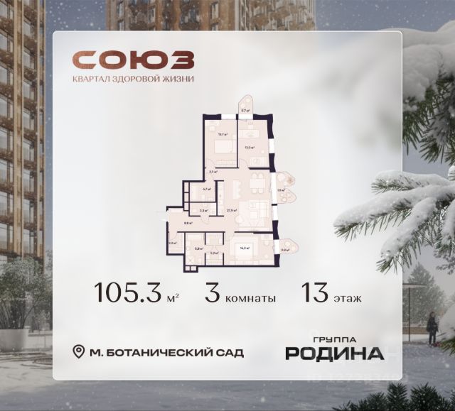 Рассрочка 0% Продаётся 3-комнатная квартира площадью 77.8 м² на 12 этаже в Жилом Комплексе "Союз". Квартал здоровой жизни премиум-класса с рекордным количеством олимпийских видов спорта: - Ледовая арена для хоккея и фигурного катания, - Футбольные поля для тренировок, - Спортивный зал для фехтования, - Бассейн на 6 дорожек, - Центр единоборств, - 4 крытых площадки для настольного тенниса, - 7 теннисных кортов (крытых и открытых), - 4 крытых площадки для сквоша, - Легкоатлетический стадион, - Площадки для баскетбола и волейбола. Уникальные форматы квартир с мастер-спальнями, приватными террасами, балконами, а также пентхаусы с открыточными видами на город. Все квартиры продаются с отделкой Shell&Core и панорамным остеклением. Расположение Пешком: - 2 мин. до парка "Сад Будущего"; - 6 мин. до ст. м. "Ботанический сад"; - 6 мин. до ст. МЦК "Ботанический сад"; - 6 мин. до парка "Леоновская роща"; На автомобиле: - 2 мин. до СВХ (МСД); - 5 мин. до Проспекта Мира; - 10 мин. до ТТК; - 15 мин. до Садового кольца; - 25 мин. до аэропорта "Шереметьево". Благоустройство - собственная спортивная инфраструктура 7 Га; - зона для пикников; - игровые и спортивные площадки для детей всех возрастов; - розарий, а также сосновые, каштановые и дубовые аллеи; - площадки под открытым небом для занятий спортом и йоги; - игровые комнаты для детей; - лаунж-зона для резидентов; - просторная переговорная для деловых встреч; - премиальный ресторан "Шабада" Сосо Павлиашвили с водными арт-объектами на прогулочной аллее, садом ароматных трав и сценой под открытым небом; - кафе, химчистки, аптеки и супермаркеты рядом с домом. Окружение - 8 парков: Сад Будущего, Леоновская роща, Хуамин, Главный ботанический сад РАН, Шереметьевская дубрава, Останкино, парк спорта "Яуза", пойма реки Яуза и музей-усадьба "Останкино"; - 3 ВУЗа: ВГИК, РГСУ, МГПУ; - 12 школ, в том числе: школа 1499 им. И.А. Докукина (топ 100), Brookes Moscow, IThub школа; - 18 детских садов, в том числе билингвальный ALERTUM KIDS; - один из крупнейших океанариумов Европы "Москвариум"; - один из крупнейших в Европе торгово-развлекательных центров "Европолис". Купить квартиру станция Владыкино (МЦК).