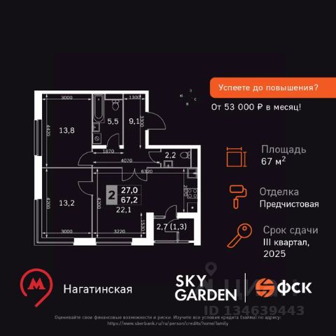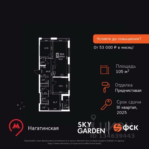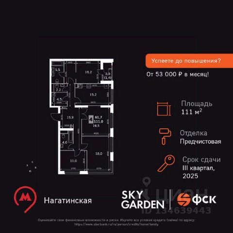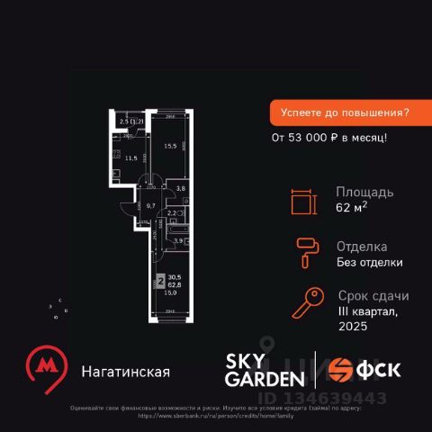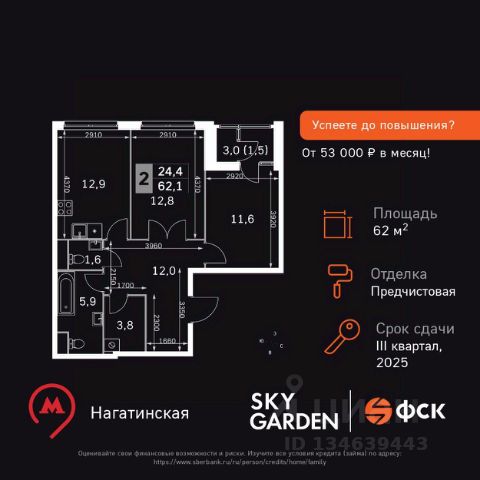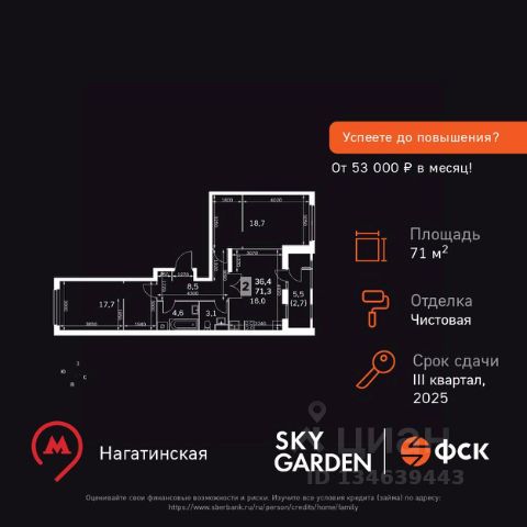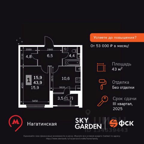 УСПЕЕТЕ КУПИТЬ ДО ПОВЫШЕНИЯ? От 53 000 рублей в месяц! Прямая продажа от застройщика! Жилой Комплекс бизнес-класса. Продаётся 1-к квартира номер 393 общей площадью 43.9 кв.м. на 26-м этаже 26 этажного здания. Без отделки. Цена с учётом скидки. Особенности квартиры: - Линейная планировка - максимальная функциональность и удобство. - Гибкая планировка - создайте пространство по своему вкусу. - Просторная кухня - место для семейных ужинов и кулинарных экспериментов. - Линейная кухня - функциональность и практичность в одном решении. - Гардеробная - удобство для хранения и организации вещей. - Лоджия - уютное место для отдыха и тишины. Информация о комплексе: Sky Garden расположен в районе Покровское-Стрешнево. На территории этого района шумит листвой одноименный парк. Зеленый живописный район, реки и каналы поблизости, чистый свежий воздух из подмосковных листов - идеальное место, чтобы ощутить себя частью природы. При этом развитая образовательная, социальная и транспортная инфраструктура оставят вам все преимущества жизни в мегаполисе. Sky Garden - идеальный баланс между природной и городской средой. Транспортная доступность: Всего в 12 минутах пешком до м. Тушинская и 15 минутах до станции Тушинская МЦД. На автомобиле: 2 км до Волоколамского шоссе, 2,5 км до МКАД и 15 км до Садового кольца Внутренняя инфраструктура: К вашим услугам современные игровые площадки: тут ваши дети с удовольствием смогут лазить по бревнам, штурмовать горки и стараться не промокнуть, бегая под струями фонтана. В Sky Garden полно возможностей как для совсем маленьких, так и для взрослых. Предусмотрены активности: мастер классы по йоге на английском газоне, воркаут- площадка, велопарковки. Также в вашем распоряжении на территории комплекса будут: поликлиника, аптека, супермаркет, зона для отдыха, сухой фонтан и площадка для подростков. Пространство для работы, оборудованное кофепоинтом и удобными переговорными. Также к вашим услугам кафе и рестораны в коммерческом кластере. Игровая комната, расположенная в центральном лобби, оборудована двухэтажным комплексом, мягкими татами, книжками и играми, способными увлечь ребятню В каждом подъезде на минус первом этаже оборудованы комнаты для хранения взрослых и детских велосипедов, колясок и самокатов Вкуснейшая горячая выпечка, ресторан с любимыми блюдами, надежная мастерская по ремонту обуви, художественная или спортивная секция для ребенка, фитнес или йога для вас, а также всё, что вам нужно для повседневной жизни - есть в нескольких минутах от вашего подъезда Внутри проекта расположена парковая территория площадью 3,5 га с игровыми и спортивными площадками, зонами для отдыха, центральной площадью, сухим фонтаном и декоративным прудом. Прилегающая набережная благоустроена для неспешных прогулок и отдыха у воды Мы создали все условия, чтобы вы могли себя поддерживать в отличной физической форме: площадка для воркаута