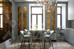 Просторная квартира с двумя спальнями и большой гостиной в Доходном доме Панюшева на Арбате, в историческом центре Москвы. Квартира общей площадью 137 м² расположена на 6-м этаже. Интерьеры комнат оформлены в спокойной цветовой палитре: природные фактуры дерева и камня использованы во всех комнатах. На полу уложен паркет благородного темного цвета и плитка под мрамор. - В каждой комнате установлена отдельная музыкальная система, управляемая через сервер и телефон. - Все окна - тройные - для защиты от звуков извне. - Кондиционирование и увлажнение. - Шторы автоматизированы. - Ремонт выполнен с рекомендациями специалиста по Васту. - Каменные полы подогревом. - Хамам. Здесь каждая деталь продумана, чтобы дарить ощущение элегантности и уюта. Квартира полностью меблирована и укомплектована бытовой техникой. Эффектные люстры и состаренные зеркальные панели на стенах добавляют пространству особого шарма. Функциональная планировка включает просторную гостиную, отдельную кухню со стильным серым гарнитуром и обеденной зоной, мастер-спальню с гардеробной и ванной комнатой, детскую, гостевой санузел, прихожую и небольшую гардеробную комнату. Комментарий эксперта. Меня зовут Владимир Пелевин — брокер компании Whitewill. Я отвечаю за продажу этого лота. Свяжитесь со мной, чтобы получить расширенную презентацию, больше фотографий или договориться о просмотре. Могу провести экскурсию по локации и познакомить вас с этим домом. ID 306 556.