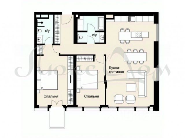 Квартира с двумя спальнями 116,8 м² и террасой 89,8 м² общей площадью 143,8 м² (терраса учтена с понижающим коэффициентом 0,3 ) в комплексе премиум-класса Victory Park Residences рядом с Парком Победы. Квартира с готовой дизайнерской отделкой от застройщика в стиле "неофактура" расположена на первом этаже в корпусе 4. Окна выходят на две стороны, с видом в Victory Garden.