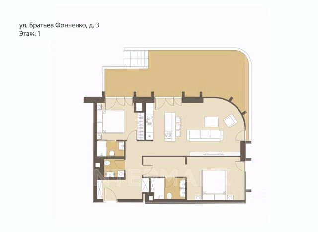 Квартира с 3 спальнями в комплексе премиум-класса Victory Park Residences рядом с Парком Победы. Квартира площадью 150 м² расположена на 1 этаже в корпусе 7. Отделка интерьера оформлена в стиле неоклассика в спокойной гамме. Благодаря нейтральной цветовой палитре комнаты можно дополнить любой мебелью и элементами декора. Предусмотрены выходы на 2 просторные террасы, где можно собираться с близкими тёплыми летними вечерами.