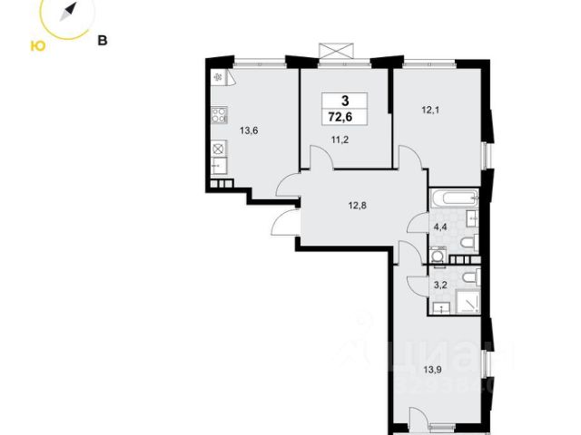 • ✅ Минимальная площадь: 19,4 м²