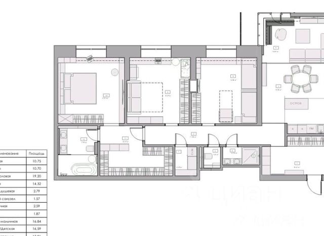 - гардеробная с местом для сушки и глажки белья с системой воздухообмена