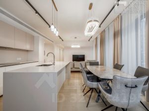 Предлагается на продажу 4-х комнатная квартира площадью 173 кв.м в жилого комплексе премиум-класса Lucky на Пресне Функциональная планировка включает: кухню-гостиную с зоной столовой, где приятно проводить семейные обеды, романтические ужины или домашние киносеансы; просторную мастер-спальню с ванной и гардеробной комнатой; детскуя и уютнуя спальня; три санузла и три гардеробные, а также постирочную зону. Уникальная особенность лота — вид на 3 стороны света. Квартира находится на 11 этаже — из панорамных окон открываются непревзойденные виды на три стороны света: на Москва-Сити, Нижний город Лаки. Благодаря высоким потолкам , французским балконам пространство наполнено приятным солнечным светом. В квартире выполнена качественная премиальная отделка, включая оборудованные ванные комнаты и кухни итальянского бренда DADA. Интерьер выполнен в стиле White с тонированным полом из натурального дерева. В отделке ванных комнат использованы премиальные европейские бренды: Villeroy & Boch, Kaldewei, Gessi. Стены оформлены терраццо — материалом, состоящим из мельчайших элементов мрамора, гранита и других натуральных камней. Качество и комфорт жизни владельцев квартир обеспечивает целый комплекс инженерных систем, включающих технологии очистки воздуха и воды. Оборудована система "Умный дом", которая позволяет устанавливать индивидуальные параметры температурного режима, влажности и других удобств. Для решения бытовых вопросов жителей работает Служба комфорта на ресепшн. Lucky — жилой комплекс премиум- класса в Пресненском районе, в 200 метрах от станции метро "Улица 1905-го года". Проект квартала разработали ведущие профессионалы российских и международных архитектурных бюро. Территории закрыта для посторонних и находится под круглосуточной охраной. Собственная инфраструктура комплекса включает: кафе и рестораны, фермерские магазины, детский сад, образовательный центр, фитнес-зал и 25-метровый бассейн, художественные мастерские, школы изучения иностранных языков, спортивные студии и второй подогреваемый всесезонный бассейн на крыше. [Лот #24852]