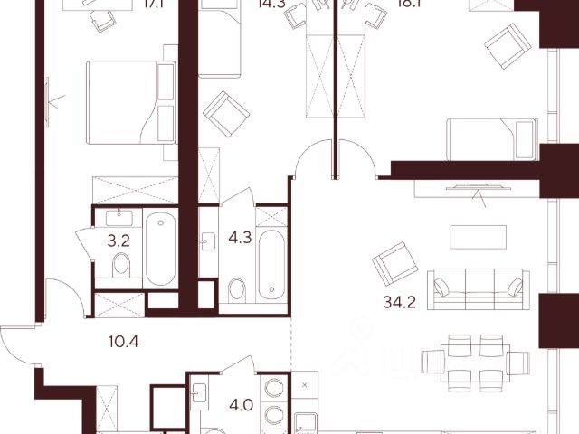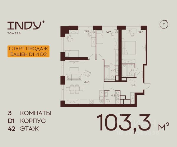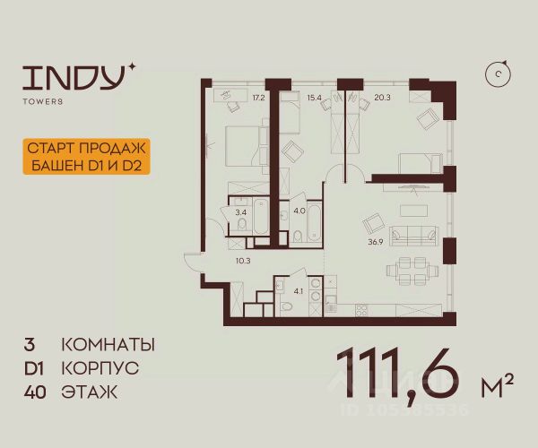 Продажа от застройщика. Продается просторная 3-комнатная квартира на 3 этаже жилого комплекса Indy Towers. Срок сдачи: 3 кв. 2029 г. Расположение: Комплекс расположен в Хорошевском районе Москвы, на улице Куусенина, в окружении почти 150 гектаров парков для прогулок и активного отдыха. Помимо этого, рядом с комплексом есть: - Детская международная академия тенниса - Ледовый спортивный комплекс ЦСКА - Футбольный стадион "ВЭБ-Арена" - Крупнейший в Европе торовый центр "Авиапарк" - Богатый выбор государственных и частных школ - 8 парков, окружающих комплекс Транспортная доступность: - 3 минут до метро Зорге - 2 минуты пешком до парка Березовая роща - 10 минут на машине до ТТК - 8 минут на машине до ТРЦ Авиапарк Внутренняя инфраструктура Indy Towers: - Кафе и продуктовые магазины - Тайский SPA - Фитнес зал - Комьюнити-зона - Детский клуб Аквилон KIDS - Детский сад Преимущества: - Технология энергоэффективности Termo-S, снижающая теплопотерю домов и позволяющую экономить на электроснабжении - Soundstop - технология дополнительной шумоизоляции на 39 дБ в квартирах с WhiteBox и чистовой отделкой - Система умного дома inHome 3.0 позволит контролировать коммунальные расходы, оплачивать счета и пользоваться услугами, не выходя из умного дома