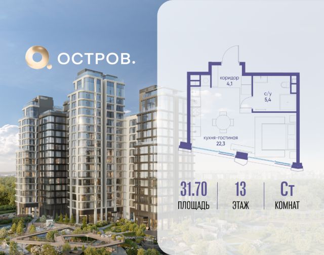 Скидка до 10% действует до 25.12.2025 г. при 100% оплате и не субсидированной ипотеке. Продаётся студия от застройщика: общая площадь 36.20 м², жилая 20.80 м², кухня 6.00 м², 8, жилой квартал "Остров 12", корпус 1 (12.1 квартал) (секция 1). срок сдачи: 4-кв. 2025. , 1 совмещенный санузел. В жилой зоне 2 больших окна на одну сторону, хорошая инсоляция. Позвоните сейчас и забронируйте квартиру! Купите квартиру для курортной жизни в Москве в квартале ОСТРОВ.12.1. Это единственный на ОСТРОВЕ квартал бизнес-класса, расположенный на первой линии у реки - здесь царит атмосфера ежедневного отпуска. Дома созданы в узнаваемом футуристичном стиле и выглядят как произведения современного искусства. Для жителей предусмотрены фитнес-рум и детский клуб, гостиная и кинотеатр, переговорные и репетиторские комнаты. На крышах устроены видовые общественные пространства с зонами для йоги, коворкингами, лаунжами. Двор-парк располагает всем необходимым для отдыха и общения всех возрастов. ОСТРОВ.12.1 - часть жилого комплекса на западе Москвы, в 15 минутах езды от центра. Это настоящий заповедник посреди большого города, в окружении реки и 650 га заповедников. Здесь все необходимое находится по соседству: от детского сада до супермаркета, от фитнес-зала до серфинг-центра. На территории созданы все условия для отдыха и общения: клубная инфраструктура в домах и дворы-парки, набережные и променады, маршруты для спортсменов, детей и возрастных жителей. В нескольких минутах ходьбы расположена станция метро "Мнёвники" БКЛ. На автомобиле - 10 минут до Москва-Сити и 15 минут до Садового кольца. Купить квартиру на улице Нижние Мневники в Москве.