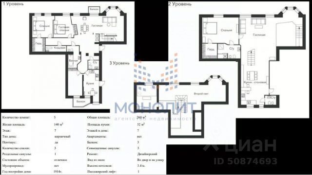 Район Хамовники. Двухуровневая квартира в самом сердце Остоженки. Планировочное решение: первый этаж- две спальни, гардеробная, гостиная, изолированная кухня ( газовая плита), ванная комната, два сан/узла, два входа; второй этаж - спальня, гардеробная, сан/узел с душевой кабиной, гостиная- кухня ( электрическая плита), гостевой с/у, один вход на этаже; третий этаж - антресоль. Окна выходят на две стороны света, из кухни- во двор. Высота потолков от 3,5 ~10 м. Панорамные виды на историческую часть города. Красивый кирпичный дом на Остоженке. Консьерж, лифт. Перекрытия в доме железобетонные. Удобный выезд на Бульварное и Садовое кольцо, на набережные. Физически и юридически свободна, полная стоимость, свободная продажа. EMERALD ESTATE является участником ассоциации агентств элитной недвижимости AREA, что гарантирует высокий уровень сервиса и профессионализма.