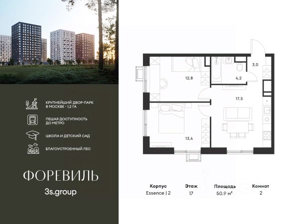 Предчистовая отделка в подарок! Пешая доступность от метро и московская прописка! Продается уютная 1-комн. квартира площадью 36,9 кв.м на 13 этаже 17 этажного жилого комплекса бизнес-класса Foreville от 3S Group. Общая площадь: 36,9 кв.м., жилая: 22,3 кв.м., площадь кухни-гостиной: 18,2 кв.м., высота потолков: 2,72 м., окна выходят во двор. Квартира предлагается без отделки, что идеально подходит для воплощения собственного дизайнерского решения. Также доступна опция предчистовой отделки, стоимость которой включается в общую цену квартиры. О проекте: Пространство Комплекс располагает крупнейшим приватным двор-парком в Новой Москве площадью 1,2 Га, предлагая жителям огромное пространство для отдыха, спорта и игр на свежем воздухе. Природный ландшафт Внутренний лесопарк с более чем 183 взрослыми деревьями и 10 320 цветущими кустарниками создает уникальную природную атмосферу для каждого времени года. Игровые и спортивные зоны Обширные площадки с безопасным покрытием, специализированные зоны для детей разных возрастных групп и взрослых, включая воркаут и настольный теннис, способствуют активному и здоровому образу жизни. Экологичность и долговечность Использование натуральных материалов, таких как лиственница, и крупноформатной бетонной плитки для покрытия, подчеркивает стремление проекта к экологичности и устойчивости. Безопасность и уединение Внутренний двор без машин обеспечивает безопасность для детей и спокойствие для взрослых. Территория огорожена и находится под круглосуточным видеонаблюдением. Сохранение времени Благодаря превосходной транспортной доступности и близости к новой станции метро Корниловская, Foreville позволяет жителям экономить время для семьи и отдыха на природе, минимизируя необходимость длительных поездок. Foreville не просто жилье, а целая экосистема для комфортной и гармоничной жизни на свежем воздухе, совмещая преимущества городской инфраструктуры и непосредственную близость к природе.