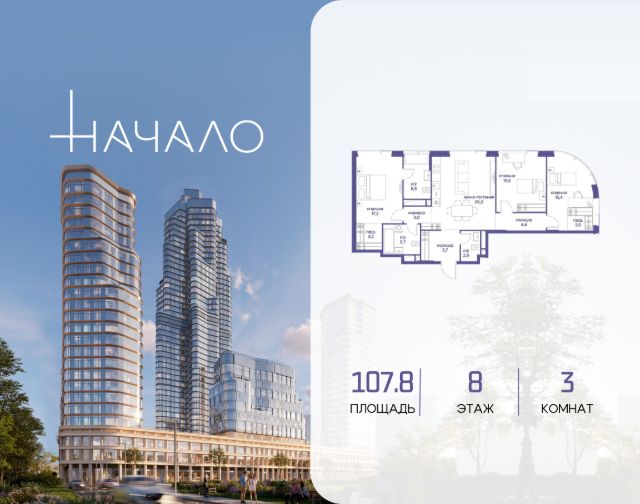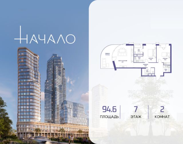 В престижном районе Пресня, на перекрестке делового и исторического центров Москвы, продается двухкомнатная квартира площадью 94.30 кв. м без отделки. Квартира находится на 11 этаже 11-этажного дома, в новом элитном жилом комплексе "Начало" от девелопера "Донстрой". Реализация проекта запланирована на 1 квартал 2030 года. Начало - футуристический дом на Пресне в нескольких минутах от Сити и Садового кольца. Проект по-настоящему космического масштаба, где есть все, чтобы раскрыть себя и свои возможности. Расположение Пресня - один из самых престижных районов Москвы. Жить здесь - значит стать частью истории столицы, быть в эпицентре деловой активности города и ощущать, как сама Вселенная вращается вокруг вас. - 5 минут пешком до Красногвардейских прудов; - 15 минут пешком до ст. метро "Улица 1905 года"; - 6 минут на автомобиле до Садового кольца и небоскрёбов "Москва-Сити"; - 12 минут на автомобиле до Кремля. Архитектура как путешествие Как росток пробивает скалу, как растет кристалл, как ракета устремляется ввысь - так формируется архитектурный образ этого дома. Точно выверенный баланс между футуристичными формами и функциональным содержанием дома выводит жизнь в нем на новую орбиту. Стеклянные фасады отражают небо и город, превращая здание в зеркало для окружающего ландшафта. Двор между небом и землёй Просторная территория двора с тремя тематическими зонами отдыха: "Млечный путь" - для детских игр и развлечений; "Космический сад" - для тихого отдыха и релакса; "Метеоритный сад" - для любителей спорта. Открытый променад - сквозной маршрут на крыше стилобата с зонами отдыха, занятий спортом, детских игр и совместной работы. Все площадки плавно связаны между собой прогулочной дорожкой. Теплая кольцевая галерея и мосты над пространством двора - все корпуса "стыкуются", точно модули космической станции. Главный центр притяжения В составе проекта возводится собственный комьюнити-центр, где создана идеальная атмосфера для любых начинаний: - Детский клуб для будущих покорителей Вселенной; - Коворкинги для решения задач планетарного и космического масштабов; - Переговорные для судьбоносных и просто важных встреч; - Лаунжи с атмосферой дзена и релакса; - Библиотека для спокойного чтения; - Кинотеатр для классики и блокбастеров. Территория комфорта и приватности Всё нужное рядом: - Современный образовательный центр со школой и детским садом - для ваших детей; - Фитнес-центр с бассейном - для релакса и борьбы со стрессом; - Ресторанная улица: кафе, рестораны, летние террасы - для деловых обедов и семейных ужинов; - Пекарня и минимаркет в доме - для ежедневных покупок; - Сквер у дома - для неспешных прогулок и спокойного отдыха; - Никаких такси на улице. Машина заберет вас прямо в подземном паркинге вашего корпуса.