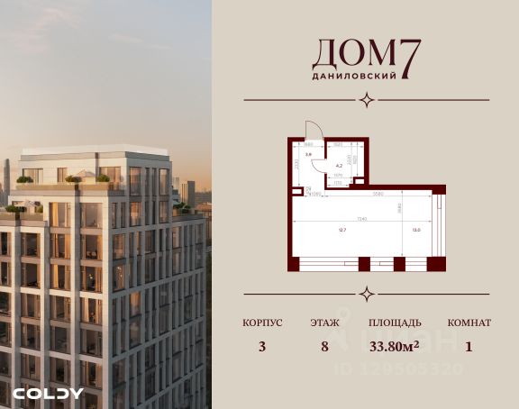 Продается 1-к квартира общей площадью 33.80 кв.м на 8 этаже в жилом квартале премиум-класса "Дом 7 Даниловский". Срок сдачи: 2 квартал 2027 года. Клубный жилой квартал "Дом 7 Даниловский" расположится в тихом уголке "старой Москвы" поблизости от центра города, на улице Серпуховский Вал. Приватный проект вдали от городского шума станет оазисом спокойствия и гармонии среди суеты мегаполиса. Автором архитектурной концепции стало именитое российское бюро "Остоженка". В проекте представлены квартиры как с предчистовой отделкой white box, так и с дизайнерской чистовой отделкой, а также 5 видовых пентхаусов с собственными террасами. На первых этажах расположатся разнообразные сервисы, включая: • Фитнес-зал; • Камерный ресторан; • Детские игровые; • Коворкинг и переговорные; • Лаунж-зоны. На внутренней территории квартала появится всесезонный сад площадью 1 га, разработанный архитектурной дизайн-студией GAFA, где каждый найдет то, что ему по душе: места для занятий спортом и настольным теннисом, детские площадки, уединенные уголки для медитации и спокойного отдыха. Для удобства жителей предусмотрен Консьерж-сервис 24/7. В подземной части дома будет расположен паркинг на 137 машино-мест, а также келлеры. На съезд и выезд будет работать система распознавания номеров. "Дом 7 Даниловский" это жизнь премиум-класса, которой хочется наслаждаться каждый день.