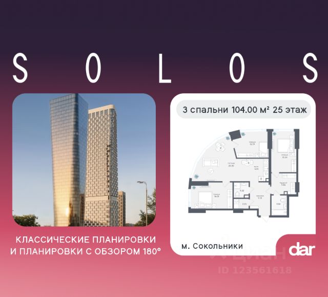 Продаётся 3-комнатная квартира 98.97 м² в жилом комплексе Солос (бизнес-класс) рядом с парком Сокольники. Квартиру отличают панорамное остекление, потолки 3.2 м, улучшенная шумо и воздухоизоляция. Дом сдаётся в 4 квартале 2029 года, продажи проходят через эскроусчета. Подземный паркинг, коворкинг, закрытая благоустроенная территория с фонтаном и артобъектами. Гибкие условия покупки. Ключевые преимущества: — Расположение в одном из самых популярных районов старой Москвы, рядом с одним из крупнейших парков столицы — "Сокольники". — До парка 2 минуты пешком. — Удобный выезд на Третье транспортное кольцо. — Метро "Сокольники" в пешей доступности. Архитектура и проект: Солос — две башни бизнескласса, спроектированные архитектурным бюро Kleinewelt Architekten. Прозрачная, лаконичная архитектура с панорамным остеклением открывает виды на парк и центр города. Высота потолков — 3,2 метра, большие окна в пол. В квартирах предусмотрены инженерные решения для акустического комфорта и чистый воздух благодаря близости парка и современным системам вентиляции. Территория: Закрытый двор с благоустройством в созерцательном стиле: фонтан, артобъекты, зоны тихого отдыха, детские и спортивные площадки. Приватность и безопасность обеспечены современными системами доступа и видеонаблюдения. Инфраструктура: — Подземный паркинг; — Коворкинг для резидентов; — Рестораны и кофейни на первых этажах; — Зоны отдыха и озеленения. Гарантии и надёжность: Застройщик — команда с опытом реализации проектов в сегменте бизнескласса. Все продажи ведутся через эскроусчета: ваши средства остаются на счетах в банке и не могут быть использованы до сдачи дома. Условия покупки: — Ипотека от ведущих банков (программы с господдержкой); — Возможна рассрочка на этапе строительства; — Инвестиционные пакеты для сдачи квартир в аренду. Запишитесь на консультацию и выберите свою квартиру уже сегодня. Мы поможем рассчитать ипотеку, подберём планировку и проведём виртуальный или живой тур по шоуруму. Здесь, среди деревьев и новой архитектуры, остаётся пространство для искренности, созидательности и чувствительности (sense-centric).