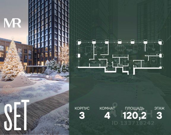 Прямая продажа от застройщика. В ЖК SET продается 1-комнатная квартира площадью 31.20 м², расположенная в корпусе 3, на 2 этаже 45 этажного дома. SET имеет стратегически выгодное расположение в ЗАО, в районе с большой историей и блестящим будущим: между природной зоной долины реки Сетунь и Кутузовским проспектом. В рамках возведения первой очереди предусмотрено три корпуса высотой 18, 45 и 59 этажей. На верхних этажах спроектированы общедоступные смотровые площадки с панорамным обзором на центр столицы. Преимущества проекта: • Функциональные планировочные решения • Контроль проникновения через входную дверь • Система управления освещением и температурой в квартире • Система защиты от протечек с функцией перекрытия воды • Вход в подъезд по биометрическим считывателям Face ID • Скоростные лифты • Двухуровневый подземный охраняемый паркинг на 495 машино-мест Застройка SET включает в себя не только жилые корпуса, но и инфраструктурные объекты. Все необходимое для повседневного комфорта будет расположено в шаговой доступности: • Фитнес-клуб с бассейном • Ведущая городская школа, детский сад и школа искусств • Центр культуры и досуга • Медицинский центр • Кафе и рестораны Расположение комплекса: Пешком: • Метро "Давыдково" - 17 минут • Парк "Долина реки Сетунь" - 3 минуты • Открытие новых станций метро в шаговой доступности в будущем Инфраструктура: Разнообразить свой день резиденты VEER смогут также проводя больше времени на свежем воздухе. Двор разделен на 4 зоны разных эмоций и действий, которые пересечены и соединены веерными прогулочными маршрутами: • Спортивная площадка устроена в глубине ""Кленовой рощи"" • В ""Чайном домике"" будет создан навес с утеплением для отдыха в любую погоду • Площадки для детей воплотятся в ""Волшебный лес"" с цветами, зеркалами и световым дизайном • ""Центральная площадь"" устроена у водного оазиса живописного пруда. " На машине: • "Москва-Сити" - 15 минут • Садовое кольцо - 20 минут • ТЦ "Океания" - 8 минут • ТЦ "Времена года" - 13 минут • Сколково - 12 минут • Гребной канал - 17 минут Компания MR предлагает своим клиентам специальные условия приобретения квартир в рамках программ ипотечного кредитования от банков-партнеров.