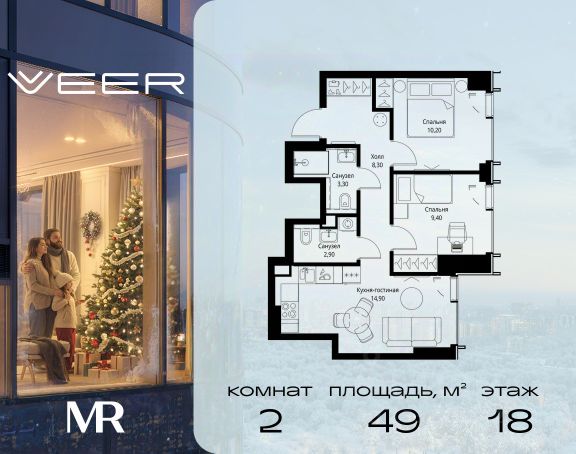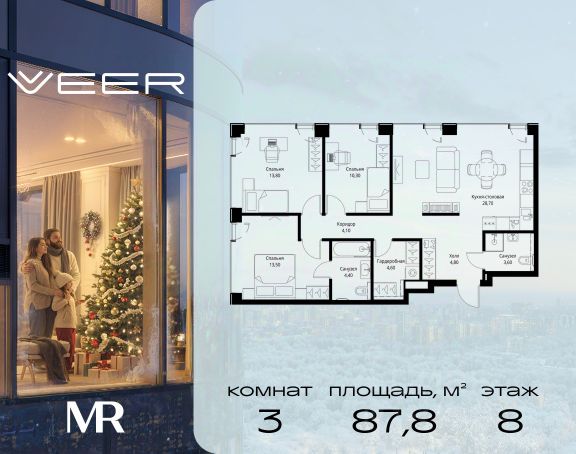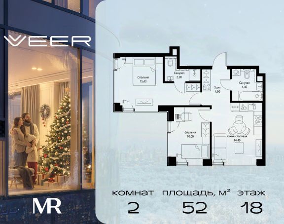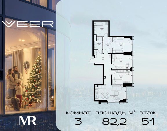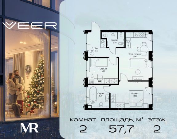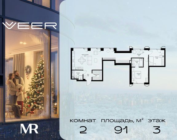 Прямая продажа от застройщика. Продаётся 2-комнатная квартира общей площадью 51.60 м² без отделки в ЖК VEER на 9-м этаже 59 этажного дома. Жилой комплекс бизнес-класса VEER от компании MR — это футуристичный мультиквартал, расположенный в престижной локации на западе Москвы. Благодаря переменной высоте башен — двух 22-этажных, 46-этажной и двух 59-этажных — возникает динамичность в силуэте комплекса, а его яркий образ вносит разноплановость в архитектурный пейзаж района. Расположение и транспортная доступность: • VEER удобно расположен в непосредственной близости от Кутузовского проспекта, обеспечивая быстрый доступ к центральным районам Москвы • Комплекс находится непосредственно напротив самого большого природного заказника в Москве - парка "Долина реки Сетунь", а за семь минут можно доехать до памятника садово-паркового искусства, Троекуровского леса. • Всего в 15 минутах - центр города, самая престижная бизнес-школа управления России "Сколково", дом творчества "Переделкино". • 18 минут пешком до м. "Давыдково" • Открытие новых станций метро в шаговой доступности в будущем Инфраструктура: Разнообразить свой день резиденты VEER смогут также проводя больше времени на свежем воздухе. Двор разделен на 4 зоны разных эмоций и действий, которые пересечены и соединены веерными прогулочными маршрутами: • Спортивная площадка устроена в глубине "Кленовой рощи" • В "Чайном домике" будет создан навес с утеплением для отдыха в любую погоду • Площадки для детей воплотятся в "Волшебный лес" с цветами, зеркалами и световым дизайном • "Центральная площадь" устроена у водного оазиса живописного пруда. Компания MR предлагает своим клиентам специальные условия приобретения квартир в рамках программ ипотечного кредитования от банков-партнеров.