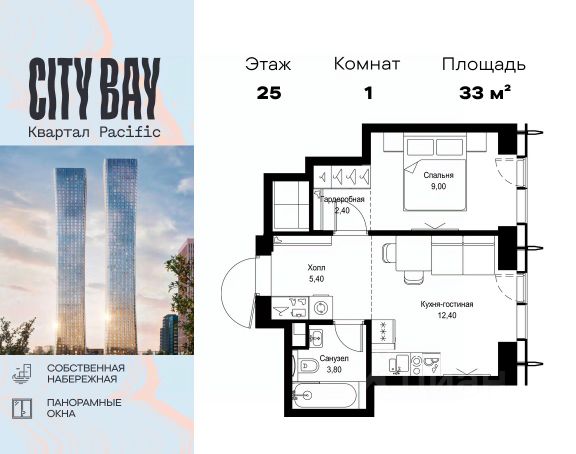 Прямая продажа от застройщика. Продаётся 3-комнатная квартира общей площадью 92.80 м² без отделки в ЖК City Вау, квартале Pacific, на 11-м этаже 59 этажного дома. Концепция жилого комплекса City Вау - настоящий город в городе с отлично развитой инфраструктурой и собственной благоустроенной набережной. На территории жилого комплекса расположено пять кварталов - Atlantic, Pacific, Indian, North, Cliff. Жилой квартал City Вау отличается оригинальной концепцией и выделяется среди других проектов такими характеристиками как: - Архитектура, - Виды из окон, - Природное окружение, вызывая гордость у жителей и восхищение у прохожих. Вся жизнь района Покровское-Стрешнево строится вокруг водных объектов: - Пойма реки Сходни с уникальной экосистемой, - Речка Химка и Химкинское водохранилище, - Москва-река, - Канал имени Москвы. Кругом вода, и местные с удовольствием этим пользуются. А сразу за рекой - центр водного спорта в Строгино с вейк-парком и яхт-клубами. Помимо воды, здесь очень много зелени: - Рядом Сходненский ковш памятник природы, естественный амфитеатр глубиной 40 метров; - Парк при усадьбе Братцево с фруктовым садом; - Дубовая роща "Маяк", - Алешкинский лес; - Лесопарк Покровское-Стрешнево с пляжами и бобрами. Главные транспортные артерии района: - Волоколамское шоссе, - Таганско-Краснопресненская линия метро и МЦД-2. Всего за 20 минут можно добраться до центра на машине или метро, а МЦД связывает ЖК City Вау с северными, восточными и юго-восточными районами. Компания MR предлагает своим клиентам специальные условия приобретения квартир в рамках программ ипотечного кредитования от банков-партнеров.