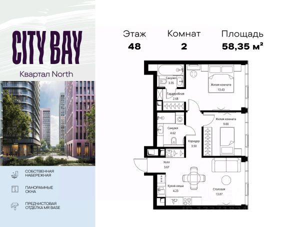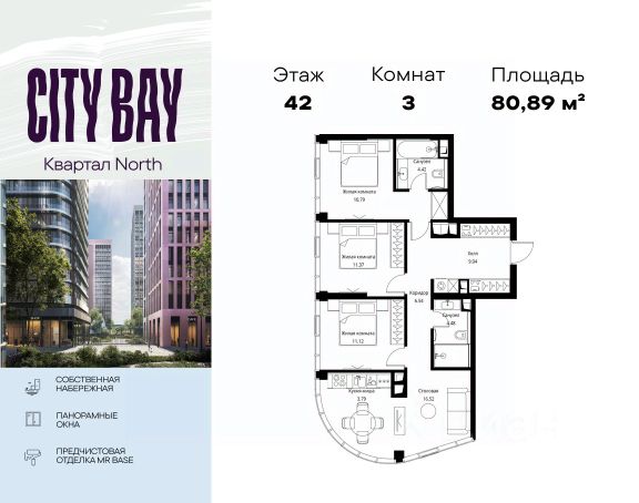 Прямая продажа от застройщика. Продаётся 3-комнатная квартира общей площадью 76.17 м² с предчистовой отделкой в ЖК City Вау, квартале North, на 3-м этаже 49 этажного дома. Концепция жилого комплекса City Вау - настоящий город в городе с отлично развитой инфраструктурой и собственной благоустроенной набережной. На территории жилого комплекса расположено пять кварталов - Atlantic, Pacific, Indian, North, Cliff. Жилой квартал City Вау отличается оригинальной концепцией и выделяется среди других проектов такими характеристиками как: - Архитектура, - Виды из окон, - Природное окружение, вызывая гордость у жителей и восхищение у прохожих. Вся жизнь района Покровское-Стрешнево строится вокруг водных объектов: - Пойма реки Сходни с уникальной экосистемой, - Речка Химка и Химкинское водохранилище, - Москва-река, - Канал имени Москвы. Кругом вода, и местные с удовольствием этим пользуются. А сразу за рекой - центр водного спорта в Строгино с вейк-парком и яхт-клубами. Помимо воды, здесь очень много зелени: - Рядом Сходненский ковш памятник природы, естественный амфитеатр глубиной 40 метров; - Парк при усадьбе Братцево с фруктовым садом; - Дубовая роща "Маяк", - Алешкинский лес; - Лесопарк Покровское-Стрешнево с пляжами и бобрами. Главные транспортные артерии района: - Волоколамское шоссе, - Таганско-Краснопресненская линия метро и МЦД-2. Всего за 20 минут можно добраться до центра на машине или метро, а МЦД связывает ЖК City Вау с северными, восточными и юго-восточными районами. Компания MR предлагает своим клиентам специальные условия приобретения квартир в рамках программ ипотечного кредитования от банков-партнеров.