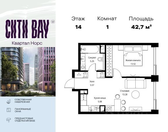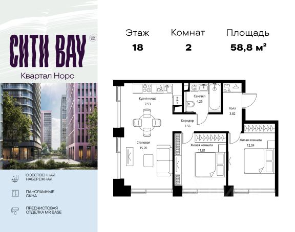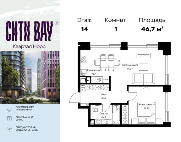 Прямая продажа от застройщика. Продаётся 4-комнатная квартира общей площадью 107.72 м² с предчистовой отделкой в ЖК Сити Бэй, квартале Норс, на 22-м этаже 24 этажного дома. Концепция жилого комплекса Сити Бэй - настоящий город в городе с отлично развитой инфраструктурой и собственной благоустроенной набережной. На территории жилого комплекса расположено пять кварталов - Атлантик, Пасифик, Индиан, Норс, Клиф. Жилой квартал Сити Бэй отличается оригинальной концепцией и выделяется среди других проектов такими характеристиками как: - Архитектура, - Виды из окон, - Природное окружение, вызывая гордость у жителей и восхищение у прохожих. Вся жизнь района Покровское-Стрешнево строится вокруг водных объектов: - Пойма реки Сходни с уникальной экосистемой, - Речка Химка и Химкинское водохранилище, - Москва-река, - Канал имени Москвы. Кругом вода, и местные с удовольствием этим пользуются. А сразу за рекой - центр водного спорта в Строгино с вейк-парком и яхт-Клубами. Помимо воды, здесь очень много зелени: - Рядом Сходненский ковш памятник природы, естественный амфитеатр глубиной 40 метров; - Парк при усадьбе Братцево с фруктовым садом; - Дубовая роща "Маяк", - Алешкинский лес; - Лесопарк Покровское-Стрешнево с пляжами и бобрами. Главные транспортные артерии района: - Волоколамское шоссе, - Таганско-Краснопресненская линия метро и МЦД-2. Всего за 20 минут можно добраться до центра на машине или метро, а МЦД связывает ЖК Сити Бэй с северными, восточными и юго-восточными районами. Компания MR предлагает своим клиентам специальные условия приобретения квартир в рамках программ ипотечного кредитования от банков-партнеров.
