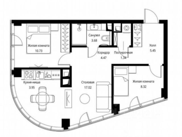 - Квартира без финишной отделки (под Ваше дизайнерское решение)