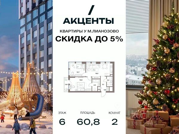 Трехкомнатная евроквартира для большой семьи. -Угловая планировка с видом на 2 стороны -Мастер-спальня с личной ванной и местом для гардеробной и детская с угловым остеклением -В квартире предусмотрено смешанное остекление -Дополнительные окна в комнатах наполнят квартиру светом и теплом -Вторая спальня для организации детской или рабочего кабинета -Большая кухня-гостиная в центре квартиры для семейных торжеств -Удобная ниша в коридоре для системы хранения -Второй санузел для удобства каждого члена семьи -Наслаждайтесь видами и созерцайте закаты на балконе -Окна в пол в зоне балкона Молодой район для жизни "Акценты" в классе бизнес-лайт — точка роста на севере Москвы. Он предлагает элегантные и строгие фасадные решения, авторский ландшафтный дизайн, а также функциональные и доступные по цене планировки. Проект находится в семи минутах пешком от станции метро "Лианозово" и одноименной МЦД-1. Добраться до МКАД можно будет за 10 минут на авто, а дорога до центра займет около 20 минут. Жилой комплекс, расположенный в районе Восточного Дегунино, предлагает развитую инфраструктуру для тех, кто ценит выбор. Он имеет удобный доступ не только к транспорту, но и к паркам, школам, садам, больницам и другим социальным объектам. В пешей доступности находятся 4 поликлиники, 5 школ, 6 детских садов, 3 бассейна и баскетбольная академия. Еще рядом есть несколько лесопарков: "Лианозово" с аттракционами и спортивными площадками для тенниса, волейбола и баскетбола, "Останкино" с конным клубом, прудом и пейнтбол-площадками. А "Северные Дубки" — это завораживающее пространство для прогулок под кронами вековых дубов, берез и лип. Кроме того, в районе не будет скучно и юным жителям. Можно оттачивать трюки в скейтпарке "Союз". Ловким и прыгучим советуем записаться в акробатический центр "Белка". Продается квартира в районе Восточное Дегунино в Москве.