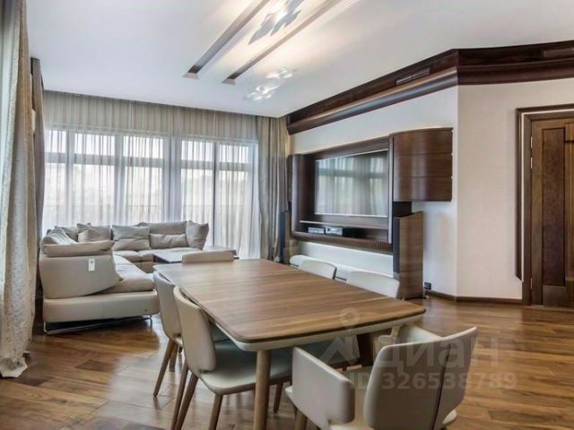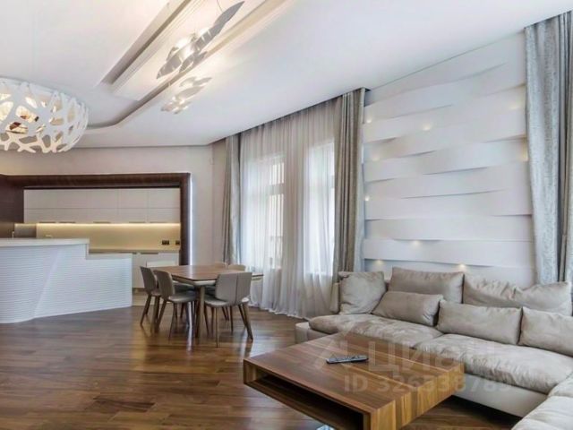 Квартира с 3 спальнями площадью 219 м² в клубном доме делюкс-класса "Малая Бронная 15" на 6 этаже. Пространство оформлено в современном стиле по индивидуальному дизайн-проекту. Здесь каждая деталь продумана для вашего комфорта. Стильная мебель, выполненная на заказ, добавляет комнатам тепла и уюта, приглашая расслабиться и отвлечься от бытовых дел. Панорамные окна, ориентированные на 2 стороны света, открывают виды на башни "Москва-Сити", Липовый двор, Дом Правительства и одну из Сталинских высоток.
