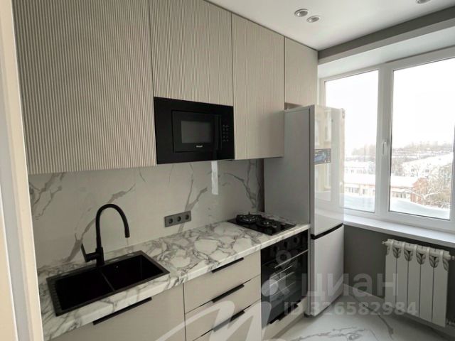 Кухня оборудована новым гарнитуром, встроенной техникой (холодильник, ПММ, варочная поверхность, духовка с СВЧ печью, вытяжка, светодиодная подсветка).