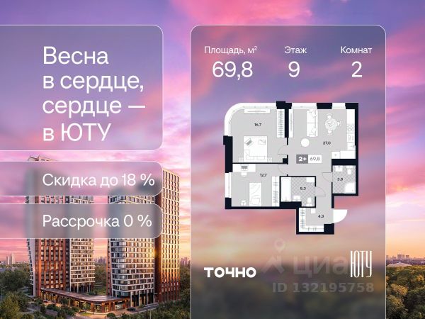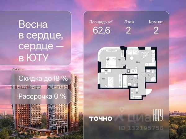 Скидка до 18% в апреле на выделенный пул лотов! ЮТУ — камерный проект бизнес-класса с исключительной архитектурой, видовыми квартирами и подходом к большой благоустроенной набережной канала имени Москвы. Проект создает идеальный баланс жизни в городе. Это приватный оазис, где в любой момент можно сменить обстановку и выбрать любой из тысячи маршрутов к активному отдыху и ярким впечатлениям. Удачное месторасположение: • Первая линия в прибрежной части Химкинского водохранилища • Исключительно тихий и зелёный район Южное Тушино • За 2 минуты можно спуститься к воде, за 10 минут найти зеленые парки и готовую инфраструктуру, за 30 минут доехать до Кремля Концепция проекта: • Две футуристичные башни, соединенные торговой галереей от бюро ATRIUM • 60 неповторяющихся планировок: квартиры с угловым панорамным остеклением, мастер-спальнями и гостиными до 39м², а также просторные квартиры площадью до 128,6 м² Чувство эксклюзивности: • Своя приватная жилая экосистема только для резидентов домов • Лаунж-терраса на крыше • В проекте предусмотрен закрытый двор-парк. Прогрессивные технологии: • 3-х уровневая система безопасности (Face ID, BLE-метки, видеонаблюдение) • Умный паркинг с распознаванием номеров Проект федерального девелопера ТОЧНО, который входит в ТОП-5 девелоперов России по объемам строительства. Купить квартиру в районе Южное Тушино в Москве.