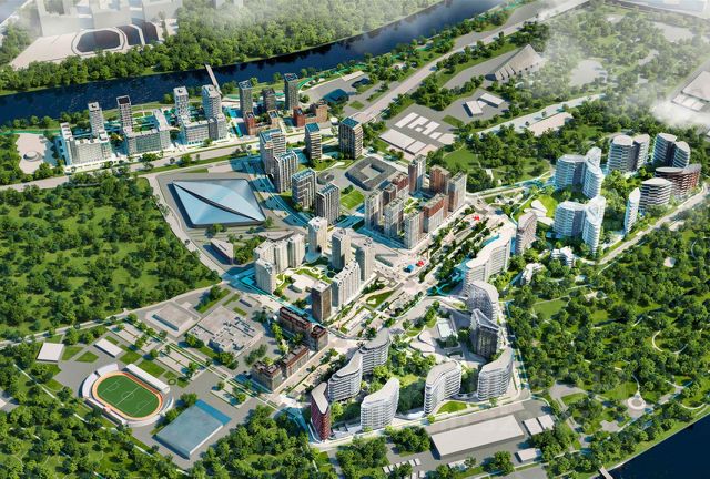 Комплекс состоит из нескольких кварталов с квартирами классов бизнес, премиум и люкс. На территории комплекса создаётся собственная городская среда, и каждый объект, необходимый для полноценной жизни, находится в 15 минутах ходьбы. Тут есть: