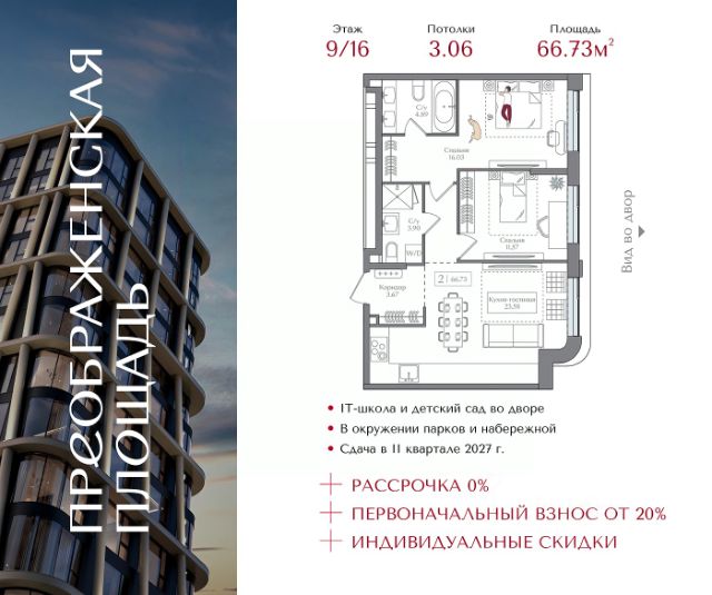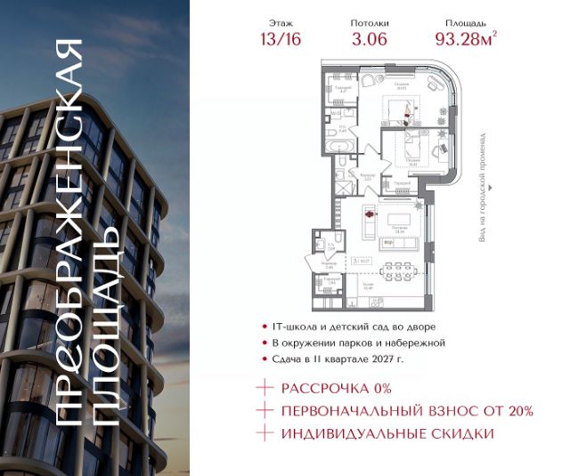 Рассрочка 0% с первоначальным взносом от 20% Индивидуальные скидки Квартира на 5 этаже в жилом комплексе премиум-класса "Преображенская площадь". Общая площадь: 76.23 кв.м. Проект премиум-класса в историческом районе Москвы. До метро "Преображенская площадь" 3 минуты пешком. Квартиры сдаются без отделки и в свободной планировке, чтобы жители могли оформить пространство с учетом своей индивидуальности. Высота потолков от 3,15м, широкоформатное остекление, 3-5 квартир на этаже. Система Умный дом. Дизайнерские лобби. Внутренний двор 1,5 га функциональное и безопасное пространство для игр, работы и занятий спортом. Пешеходный променад для прогулок. Дома переменной этажности. Есть подземный паркинг. Жилой комлекс находится в окружении парков Сокольники, Черкизовский, Измайловский, заповедника Лосиный остров и ВДНХ, а также вблизи пешеходной набережной. Комфортная удаленность от центра: 7 минут на автомобиле до ТТК, 8 минут до Садового кольца, 25 минут до Кремля.