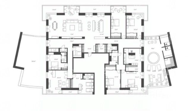 В квартире выполнена премиальная дизайнерская отделка с использованием высококачественных и натуральных материалов, таких как: натуральный мрамор, анодированная бронза, натуральный итальянский шпон, анодированная латунь.