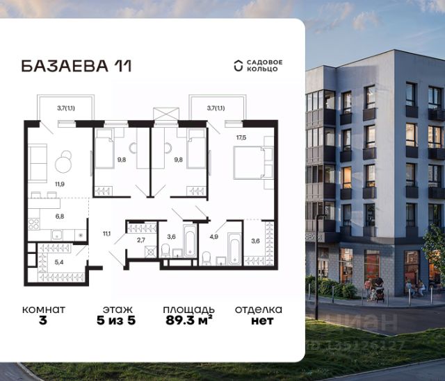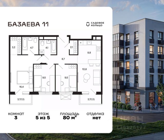 Продается квартира в ЖК "Базаева, 11" с 2 спальнями на 5 этаже 5 этажного дома. Общая площадь: 59 кв.м. Высота потолков 2.72 м. Срок сдачи 2 квартал 2027 г. Эскроу-счет. Застройщик ГК "Садовое кольцо". -Расположение Жилой комплекс в экологически чистом районе Московской области городском округе Шаховская. Камерное пятиэтажное здание находится в пешей доступности от всей необходимой инфраструктуры. Автостанция Шаховская расположена в 10 минутах от дома. Всего в 11 минутах ходьбы находится ж/д станция Шаховская, откуда удобно добраться электричкой до Рижского вокзала. Дорога до МКАД займет 1,5 часа на автомобиле. -Инфраструктура Проект расположен рядом с современным теннисным центром и Дворцом торжеств. В шаговой доступности — детская школа искусств, Шаховская гимназия, школа 1 и три детских сада. Всего за 3 минуты от дома можно дойти до Городского парка — здесь вас ждут аттракционы, верёвочный городок, тюбинговая горка и ресторан. Парк соседствует с живописным сквером у реки, украшенным подвесными мостами, ротондой и фонтанами. -Внутренний двор На территории проекта появится огороженная детская площадка, рассчитанная на детей всех возрастов, — с песочницей, канатным комплексом и зоной для игр. Для любителей активного образа жизни будет обустроена спортивная площадка с теннисным столом, турниками, тренажёрами и гимнастическими брусьями. Для автовладельцев на территории проекта предусмотрена удобная плоскостная парковка на 81 машино-место. -Архитектура Монохромное здание оформлено декоративным кирпичом и штукатуркой в тёплых светло-серых и насыщенных серых тонах. Эстетику фасада подчёркивают террасные ограждения и корзины для кондиционеров, выдержанные в единой цветовой гамме. -Входная группа Входные группы спроектированы на уровне земли — без ступеней и перепадов. Такой подход обеспечивает комфортный доступ в подъезд с коляской, чемоданом или велосипедом и подчеркивает продуманную архитектуру дома.