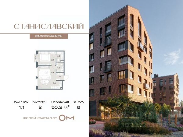 Беспроцентная рассрочка от застройщика. В продаже 2-комнатная квартира квартира площадью 50.2 м², расположенная на 6 этаже в жилом квартале "Станиславский" — проекте бизнес-класса на Новорижском шоссе, всего в 10 минутах от Москвы. В квартире 141 Дом 1 (Корпус 1.1, секция 4) высота потолков — от 3 метров, просторная планировка с гардеробной и большой кухней-гостиной создают комфорт и свободу для воплощения ваших идей. В проекте есть разнообразные отделочные решения, что позволяет реализовать любые дизайнерские предпочтения и планировочные идеи. В "Станиславском" представлены квартиры на любой вкус и для любой семьи: студии, классические и европланировки, а также крупные 4- и 5-комнатные варианты. Все помещения предлагаются без отделки, что дает свободу для создания уникального пространства. Обустроенная территория предусматривает функциональное зонирование: зеленые бульвары, природные тропы, интерактивные зоны, центральная площадь с подиумом для мероприятий и спортивный кластер. Для жителей предусмотрены разнообразные сценарии досуга: тихие зоны для общения, массажные тропы и сад ароматных трав для оздоровления, всесезонные уличные игры и открытые поляны для спортивных и настольных развлечений. Также есть познавательная зона с огородом, скворечниками и микроскопами. В концепции ЖК "Станиславский" особое внимание уделено въездной зоне: здесь создана комфортная площадка для встреч с гостями, обрамленная живой изгородью. Отсюда также открывается доступ к специально оборудованной территории для выгула питомцев — всё продумано для удобства и уюта жителей.