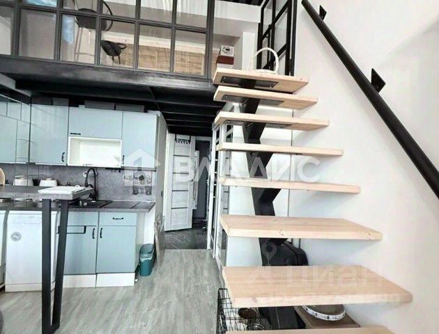 Второй этаж - большая гардеробная 3м в длину. Этаж полностью застеклён, поэтому студию можно считать полноценной евро двушкой с отдельной спальней! Такая студия Единственная в индивидуальном Дизайн проекте в этом апарт комплексе комфорт класса. Комфортно проживать так же с семьёй, и в паре. У остальных спальня -это открытый балкончик над залом.