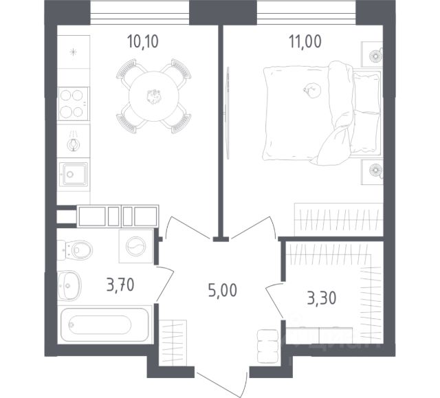 Продаётся 1-комнатная квартира в строящемся доме (Корпус 2 стр2), срок сдачи: IV-кв. 2026, общей площадью 33.1 кв.м., на 16 этаже. Новый жилой комплекс "Ольховый Квартал" от Группы Самолет