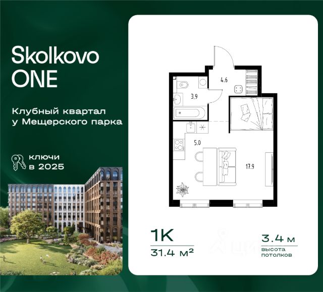 Прямая продажа от застройщика! Жилой комплекс в двух шагах от Мещерского парка Квартира в корпусе 6 | 32,2 м² | 9 этаж из 9 | Срок сдачи — III кв. 2025 года Откройте для себя новый уровень жизни в ЖК "Skolkovo ONE" — единственном жилом комплексе с собственным приватным выходом в Мещерский парк. Преимущества ЖК "Skolkovo ONE": Эксклюзивная локация: Живите в гармонии с природой, не отказываясь от ритма мегаполиса: Мещерский парк (465 га) в двух шагах от дома — ваши персональные "легкие" в черте города. 5 минут до Инновационного центра "Сколково" — соседство с технологиями будущего. 20 минут до Москва-Сити — идеальный баланс уединения и доступности. 10 минут до метро "Озерная", "Говорово" Бизнес-класс в английском стиле: Клубный формат в духе английской архитектуры с панорамным остеклением и французскими балконами. Комфортная этажность, 9 этажей. Фасады из натуральных материалов. Smart-планировки: мастер-спальни, два санузла, гардеробные. Панорамные виды на лес и парк из окон. Квартиры без отделки — реализуйте собственный стиль и воплотите любые дизайнерские решения. Комфорт и сервис: Консьерж-сервис, дизайнерские лобби с зонами для работы и отдыха. Дендропарк во дворе, детская инфраструктура и продуманные общественные пространства. ЖК "Skolkovo ONE" — клубный жилой комплекс для тех, кто ценит баланс между динамикой мегаполиса и уединением природы. Узнайте подробности и забронируйте свою квартиру у наших менеджеров!
