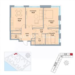 Квартира на 7 этаже, всего 2 квартиры на площадке и 21 квартира в подъезде. Установлен видеодомофон.