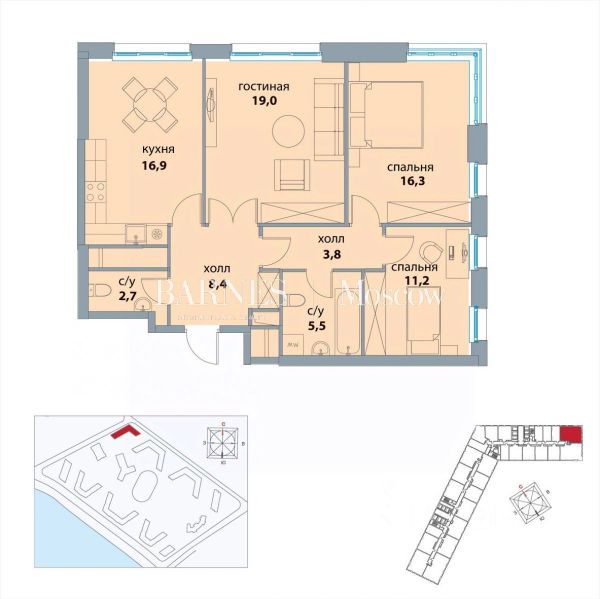 Единственная квартира на Кутузовском проспекте с двумя изолированными комнатами, дизайнерским ремонтом и отдельной кухней.