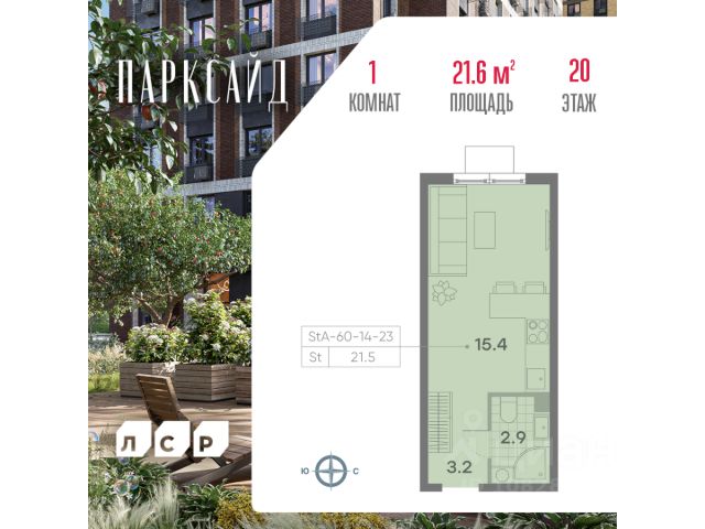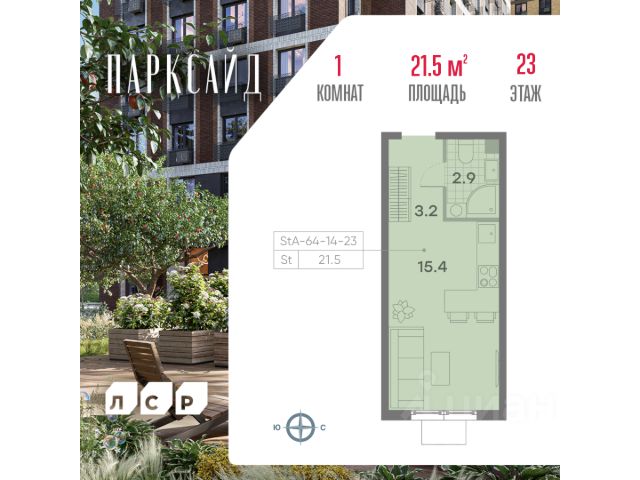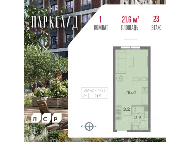 Продаётся 1-комнатная квартира общей площадью 39,8 кв. метров на 23 этаже жилого квартала Парксайд. Возводится в районе Чертаново Центральное Южного административного округа Москвы. В 2 км от будущего комплекса находится станция метро "Пражская". Для автомобилистов есть удобные выезды на Варшавское шоссе и Чертановскую улицу. Корпуса расположены таким образом, что с них открываются панорамные виды на лесной массив. Все корпуса будут находиться на общей площадке, где будут созданы сквозные пешеходные арки, соединяющие дворовое пространство с территорией Битцевского леса. Кроме того, на площадке будут расположены объекты социального назначения и коммерческие помещения. ЖК Парксайд предлагает комфортное и современное проживание в окружении природы и развитой инфраструктуры района.