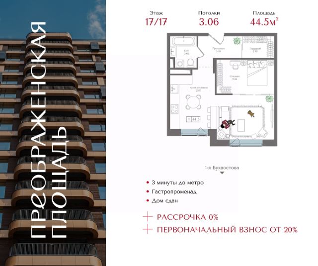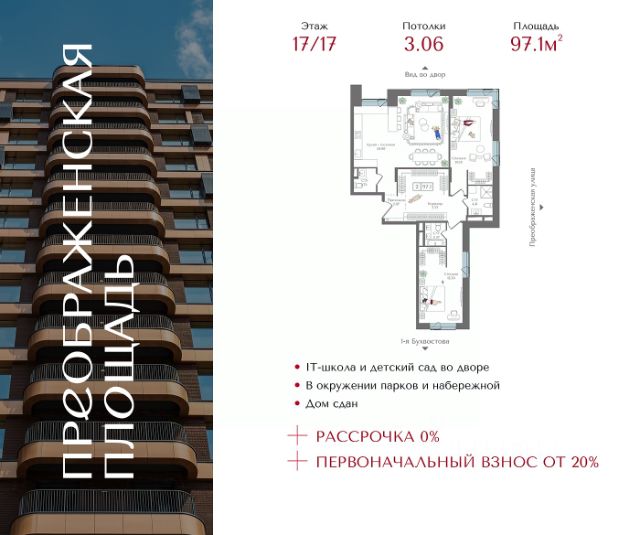 ARTEL два 12-этажных клубных дома по 82 квартиры в каждом. Квартира без отделки. Доступна опция дозаказа (2 варианта отделки на выбор). Особенности: Консьерж-сервис премиального уровня: ваших гостей встретят и проводят, помогут с бытовыми вопросами. Профессиональные службы клининга и охраны обеспечат полный порядок. На ухоженной, безопасной территории комплекса вы не увидите никого кроме соседей. Доступна опция валет-паркинга. Инфраструктура: 58 машиномест в подземном паркинге. Каждое — с зарядкой для электромобиля. Есть мотоместа. Предусмотрено хранение велосипедов и самокатов, колясочные и лапомойки. В приватном атриумном дворе сад с дорожками из натурального камня, воркаут-зона, места для отдыха и работы. Отдельная парковка для курьеров. Для курьеров будет отдельный вход, чтобы не пересекаться с остальными жильцами. Вокруг комплекса много зелени, низкая плотность и этажность окружающей застройки. Новых строек рядом не предвидится. В шаговой доступности: 10 детских садов и 8 школ, Преображенская набережная, кафе и рестораны, ТЦ, музеи, медицинская и спортивная инфраструктура. Сделка по договору долевого участия.