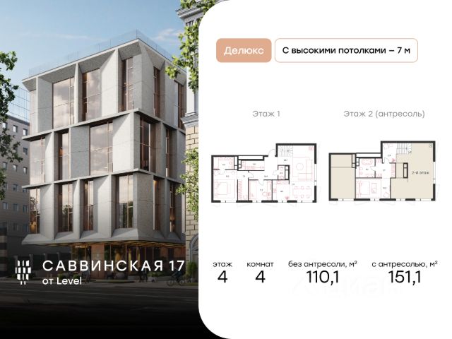 В историческом районе Хамовники продается 3-к квартира площадью 82.40 кв.м, расположенная на 4 этаже клубного дома Саввинская 17 от Level. Преимущества: - всего 22 квартиры редкого формата, что формирует атмосферу элитного закрытого клуба; - высота потолков от 6,43 до 7 метров; - окна в пол, каждая квартира будет наполнена светом и солнцем; - возможность сделать второй уровень в каждой квартире и возможность установить дровяной камин в квартирах на 4-ом этаже; - механизированный подземный паркинг; - закрытый двор с детской площадкой, сенсорным садом для детей и местом для тихого отдыха взрослых. Расположение и инфраструктура: Проект расположен в самом сердце Москвы на Саввинской набережной. - 2 минуты до Садового кольца и 6 минут до ТТК на машине; - 20 минут пешком до станции метро "Спортивная"; - 15 минут пешком до "Лужники"; - в окружении более 15 детских садов, в том числе 9 частных; - в пешей доступности расположены 11 школ, 4 из которых входят в топ-20 школ Москвы по версии Forbes; - в окружении 5 парков, в том числе парк "Новодевичьи пруды", усадьба Трубецких, парк Горького. Отличная транспортная доступность: Еще одно преимущество резиденции - удобная транспортная доступность. Несмотря на близость к центру, дорога на автомобиле до Садового кольца займет 2 минуты, до ТТК - 6 минут. В пешей доступности (20-24 минуты пешком) находятся три станции метро: "Спортивная", "Фрунзенская" и МЦК "Лужники".