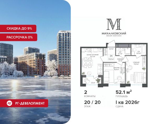 Новогодняя скидка 9% при покупке квартиры! Цена указана с учетом максимального размера скидки. Идет выдача ключей. Продаётся 3-к квартира 85,5 кв.м. в ЖК "Михалковский" на 15-м этаже 15 этажного дома. Компания "РГ-Девелопмент" предоставляет новогоднюю скидку на квартиры в жилом комплексе. Акция действительна с 12.09.2024 по 31.01.2026 включительно. Для того чтобы воспользоваться предложением, необходимо подписать договор на приобретение недвижимости до 31.01.2026 включительно. Рассрочка 0% + Скидка 5% на готовые квартиры. Компания "РГ-Девелопмент" запускает комфортную программу рассрочки на квартиры в построенных корпусах. Предложение распространяется на квартиры со свободной планировкой в построенном корпусе 3. Условия: - Скидка 5% - Первый платеж — от 30% от стоимости объекта. - Оставшаяся сумма выплачивается не позднее 31.03.2026. Действует программа "Растет семья - растет и квартира". Прямая продажа от застройщика! Старт продаж новых корпусов. Квартиры без отделки. Срок сдачи корпуса - 3 кв. 2024 г. Особенности проекта: Завораживающие виды из окон Красивое благоустройство Уникальная локация для Москвы (рядом Головинский парк и пруды, усадьба Михалково) Рядом с центром Новый проект "РГ-Девелопмент" объединил в себе все необходимое для комфортной жизни в мегаполисе: узнаваемую архитектуру голландского бюро MLA+, близость зеленых зон, транспортную доступность, благоустроенную территорию с игровыми, спортивными площадками, подземный паркинг, детский сад. Название комплекса указывает на одну из самых привлекательных его черт - соседство со знаменитым имением Михалково, которое когда-то принадлежало известным и даже легендарным для российской истории людям. Это проект c выходом в живописный Головинский парк с пятью прудами привилегия, доступная немногим. Позвольте себе роскошь жить в месте, где создавалась история и когда-то проводили свой досуг знаменитые династии Дашковых и Паниных.