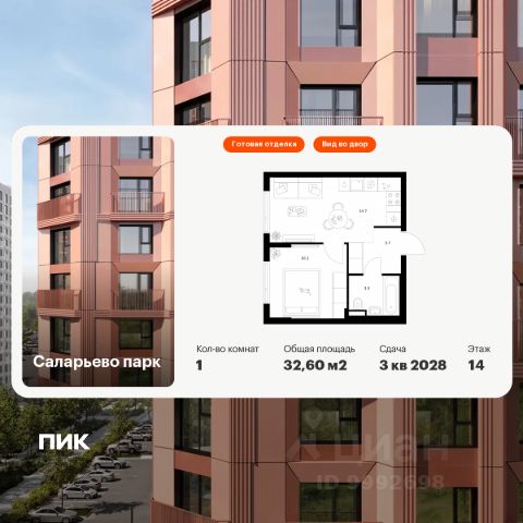 Продаётся 1-комн. квартира площадью 31,9 кв.м на 18 этаже 18 этажного дома (Корпус 74.4, Секция 4) проекта ПИК Саларьево парк. Светлый просторный подъезд на уровне земли, функциональная планировка, большие окна, предчистовая отделка. Жилой район "Саларьево парк" расположен в Новой Москве, в четырёх километрах от МКАД по Киевскому шоссе. Две станции метро: "Саларьево" и "Филатов луг", — находятся в пешей доступности от проекта. Дойти до них можно за 510 минут. В квартале уже создана качественная среда, где есть абсолютно всё для полноценной жизни, работы и отдыха. Благодаря удобному расположению проекта всё важное будет рядом: детские сады, школы, кафе и рестораны, шопинг в торговых центрах, фитнес и даже аэропорт. Все корпуса в квартале гармонично сочетаются, образуя единую городскую среду. Между собой их объединяет невысокая этажность и натуральная цветовая гамма. Здесь приятно гулять и проводить время на улице всей семьёй. В "Саларьево парке" создана уникальная образовательная среда, включающая в себя шесть школ, рассчитанных на 6 250 учеников. Две из них уже открыты, их посещает 2 300 детей. Также на территории "Саларьево парка" находится 12 детских садов, один из которых с бассейном. Сейчас уже открыты 7 садов. В "Саларьево парке" открыта уникальная игровая площадка — PlayHub "Оригами". Здесь есть ручей, горка-труба и рельефные холмы. Взрослые смогут отдохнуть в уютном кафе, пока дети играют. Также на территории проекта есть SportHub — большая спортивная зона, разделённая по интересам и возрастам. Здесь можно заниматься разными видами спорта: футболом, баскетболом, волейболом и стритболом. Зимой центральную часть площадки превращают в каток. Во дворах-парках жилого квартала есть места для отдыха, детские и спортивные площадки. На первых этажах домов расположены магазины, кафе и полезные сервисы. Также вблизи проекта есть несколько масштабных торговых центров. До ТЦ "Саларис" пять минут пешком, до "Рио", Metro Cash & Carry и "Леруа Мерлен" — пять минут на автомобиле. Артикул 1006618 (Застройщик ООО "Специализированный Застройщик "Тирон")