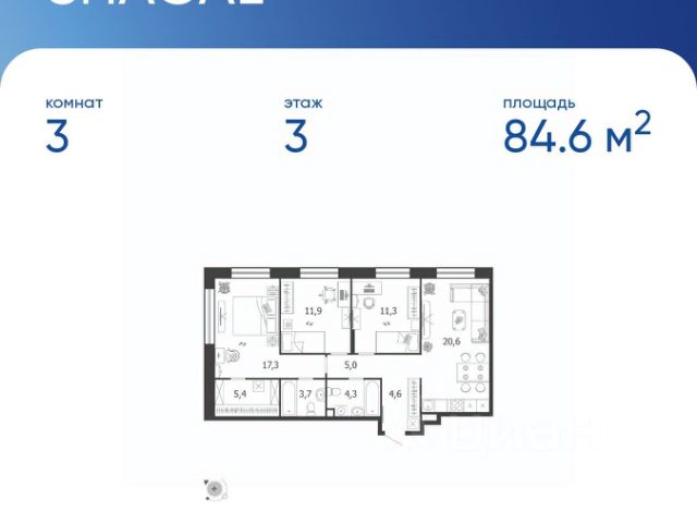 Продается квартира 856, по адресу г. Москва, ЮАО, Даниловский, ул. Автозаводская, вл. 23/75, корпус Жилой квартал Shagal, 3 очередь, 5 этап, корпус 9 в Shagal на 11 этаже, с площадью 85.6 м2.