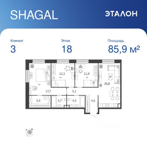 Продается 2-к квартира без отделки в ЖК "Shagal". Общая площадь квартиры — 68.5 кв. м, этаж 18 из 18. Тип дома — монолитный. Цена указана при 100% оплате. Квартал Shagal — крупнейший проект комплексного освоения в Москве. В проекте реализуется продуманная система маршрутов. Еда, покупки, услуги, прогулки, спорт, образование, работа и развлечения — все будет находиться рядом с домом: принцип 15-минутной доступности инфраструктуры и сервисов. Разнообразие и продуманность пешеходных маршрутов, а также короткие расстояния между основными точками притяжения мотивируют резидентов Shagal с удовольствием передвигаться по району пешком, не выпадая из ритма большого города. Продуманная транспортная сеть района и безопасный скоростной режим создают комфортные условия для перемещений любым способом: на автобусе, машине, самокате или велосипеде. Не нужно выезжать из района, чтобы получить комфорт и сервис самого высокого современного стандарта: все необходимые услуги, инфраструктура, парки и вторая по протяженности набережная в городе — на расстоянии 15-минутной прогулки от вашего дома. Квартал Shagal станет первым в Москве жилым районом, где будут комплексно реализованы инновационные подходы в проектировании и строительстве зданий. Архитектурная композиция состоит из домов отличающегося типа. Высотные башни-доминанты с видовыми квартирами, дома пониже, растворяющиеся в спокойствии внутренних двориков, малоэтажные камерные таунхаусы и разноэтажные дома с лоджиями на первой береговой линии соединяются в одно эстетичное современное произведение. В результате создаётся насыщенное идентичное пространство, подчёркнутое плавностью природных форм, наполненное светом, воздухом и свободой.
